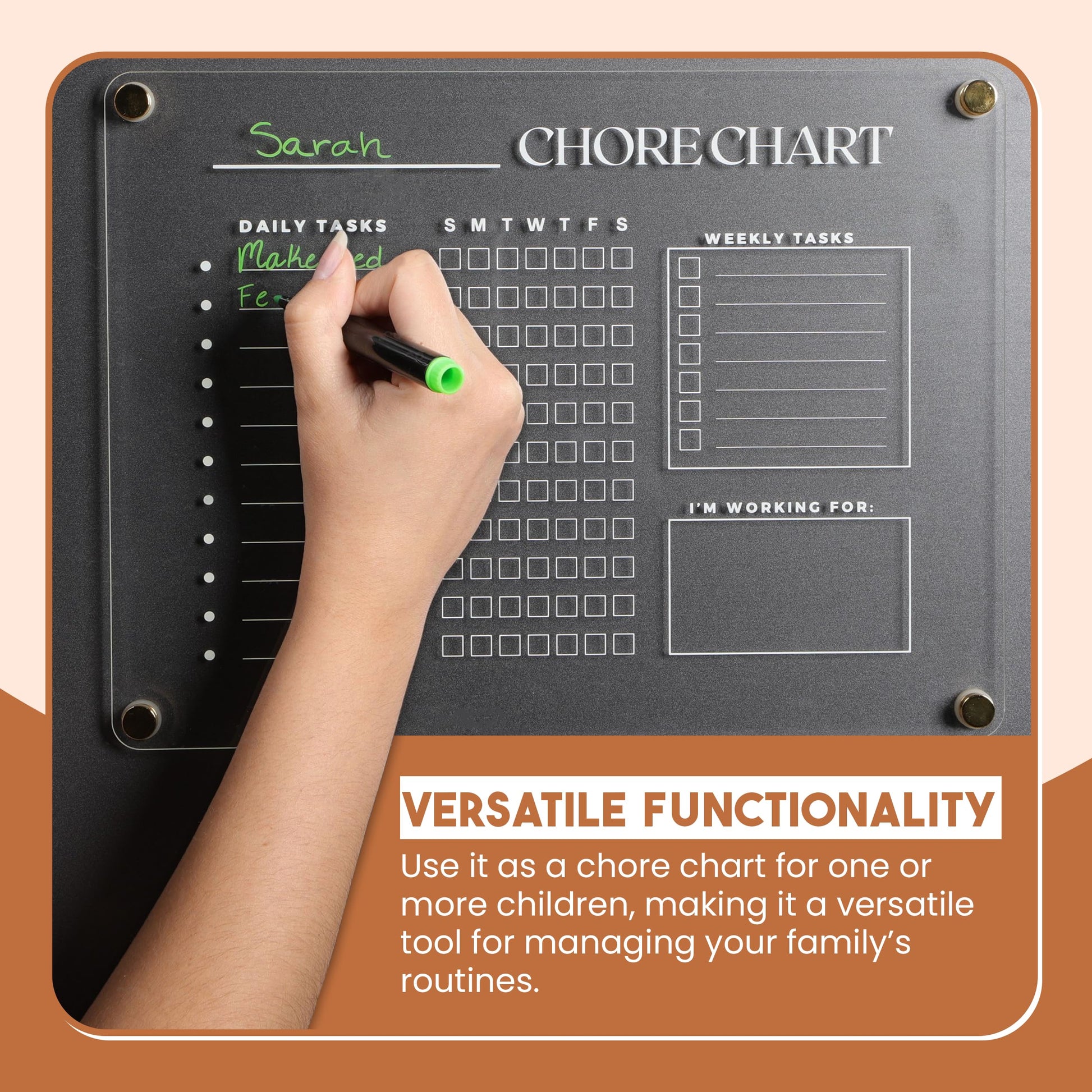 Versatile Use with Chore Magnets: Works well with dry-erase markers and additional chore magnets to make updating tasks simple and hassle-free.